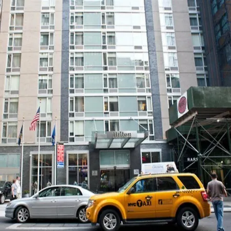 Hilton New York Fashion District é um hotel de luxo, que disponibiliza quartos com escrivaninha, máquinas de café/chá e TV de tela plana com canais via satélite, assim como máquina de café/chá e refrigerador. Almofadas de almofadas de plump down, travesseiros de penas para baixo e travesseiros macios ou duros antialérgicos estão disponíveis nos quartos.